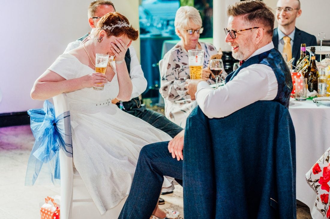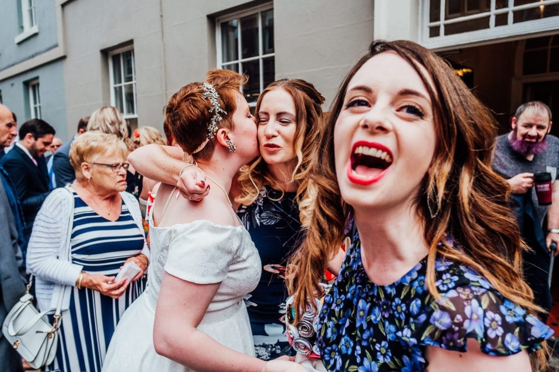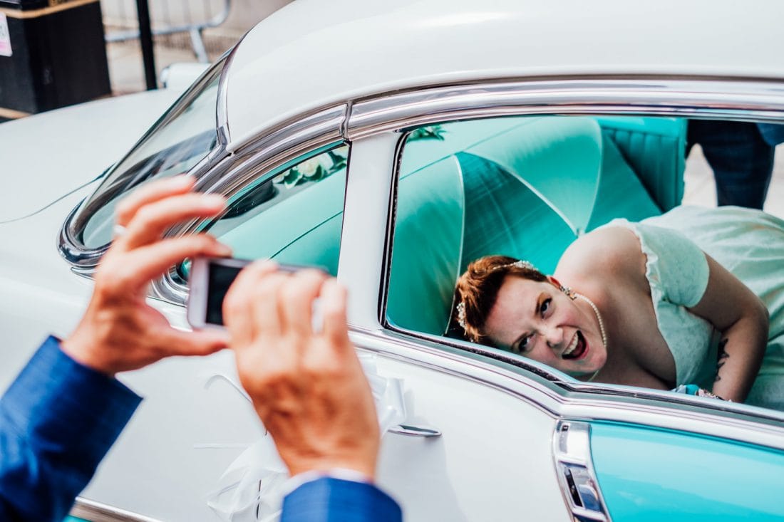 Before the ceremony, me, Rachel and her dad had some time to kill in the fancy car, so we decided to pop to Rachel’s house to get photos of their fluffy cats. We got all the way to the front door, and Rachel went to open it before realising she didn’t have a key! So we made plans to pop round the corner to her dad’s to have a GnT in the garden… you can guess what happened there… wedding party members don’t carry house keys! It gave us a good laugh, anyway.