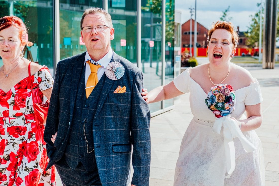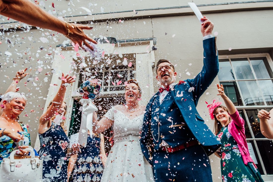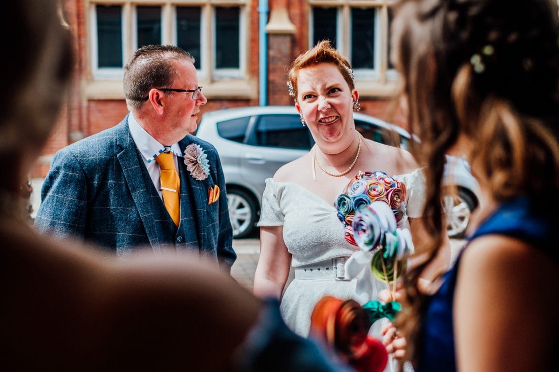The ceremony was at Doncaster Registry Office, and they were seen off with a mountain of homemade confetti – it seemed to be never-ending, it was awesome! I felt like we were in a snow globe.