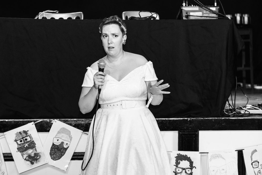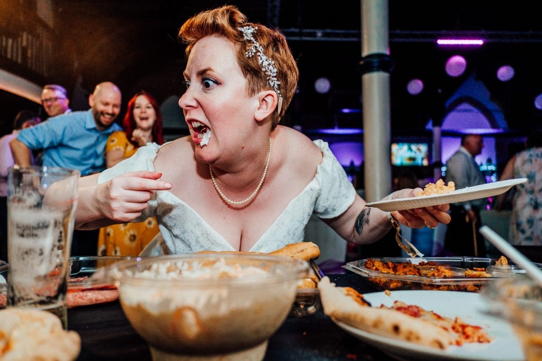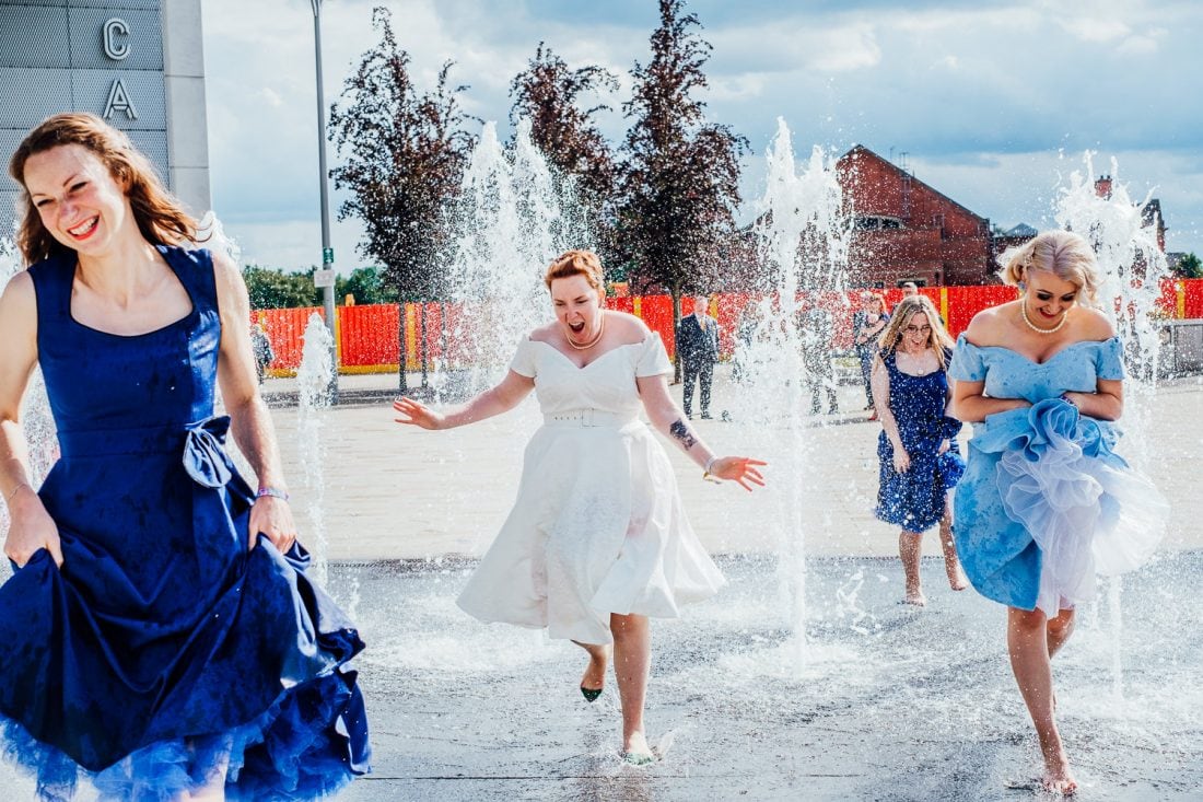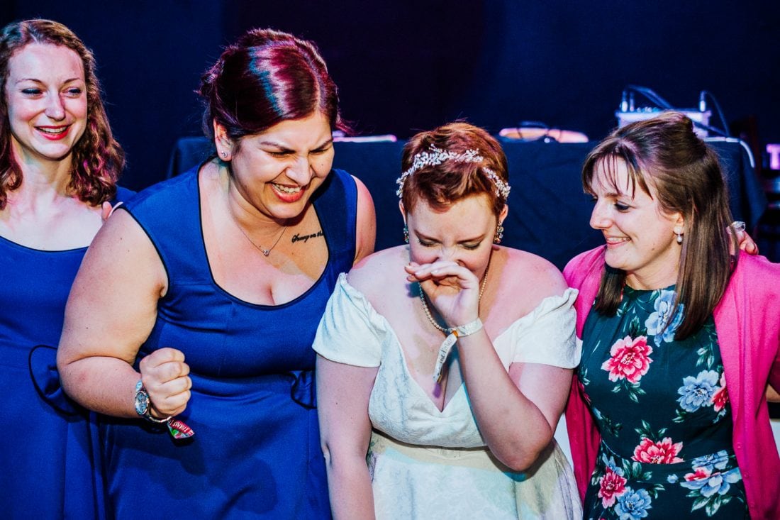 Venue: Diamond // Suit: Marc Darcy // Dress: British Retro // Shoes (groom): Joe Browns // Shoes (bride): Irregular Choice // Pork pie wedding cake: Toppings // Cupcakes: Moor’s Bakery // Flowers: Janice Bassingdale // Bridesmaid dresses: Lindy Bop // Table decorations: Sally and Gary Collings